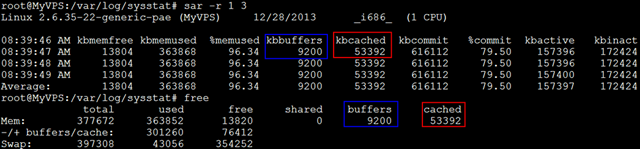 kbbuffers和kbcached:这两个值就是free命令中的buffer和cache.